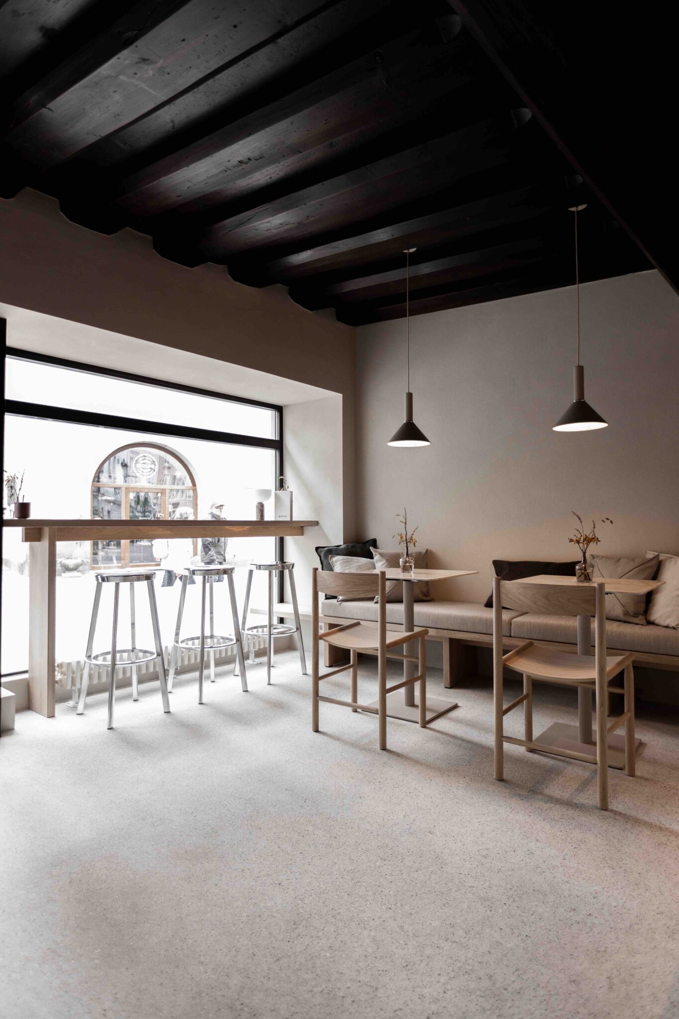 Als Architektin plante, baute und richtete sie alles selbst ein. Heute ist das Café gereift, klarer, ruhiger, mit einer Eleganz, die ihrem Geschmack entspricht. „Während der Renovierung 2024 hatte ich große Angst, dass unseren Stammgästen der neue Look nicht gefallen würde“, erzählt sie. „Die alten Möbel hatten Spuren der Jahre, und auch ich war nicht mehr die Studentin von damals.“ Gemeinsam mit ihrer damaligen Nachbarin Helene Deisenhammer und ihrem Büro für Gestaltung, entstand ein Konzept, das Ruhe, Stil und Persönlichkeit vereint.