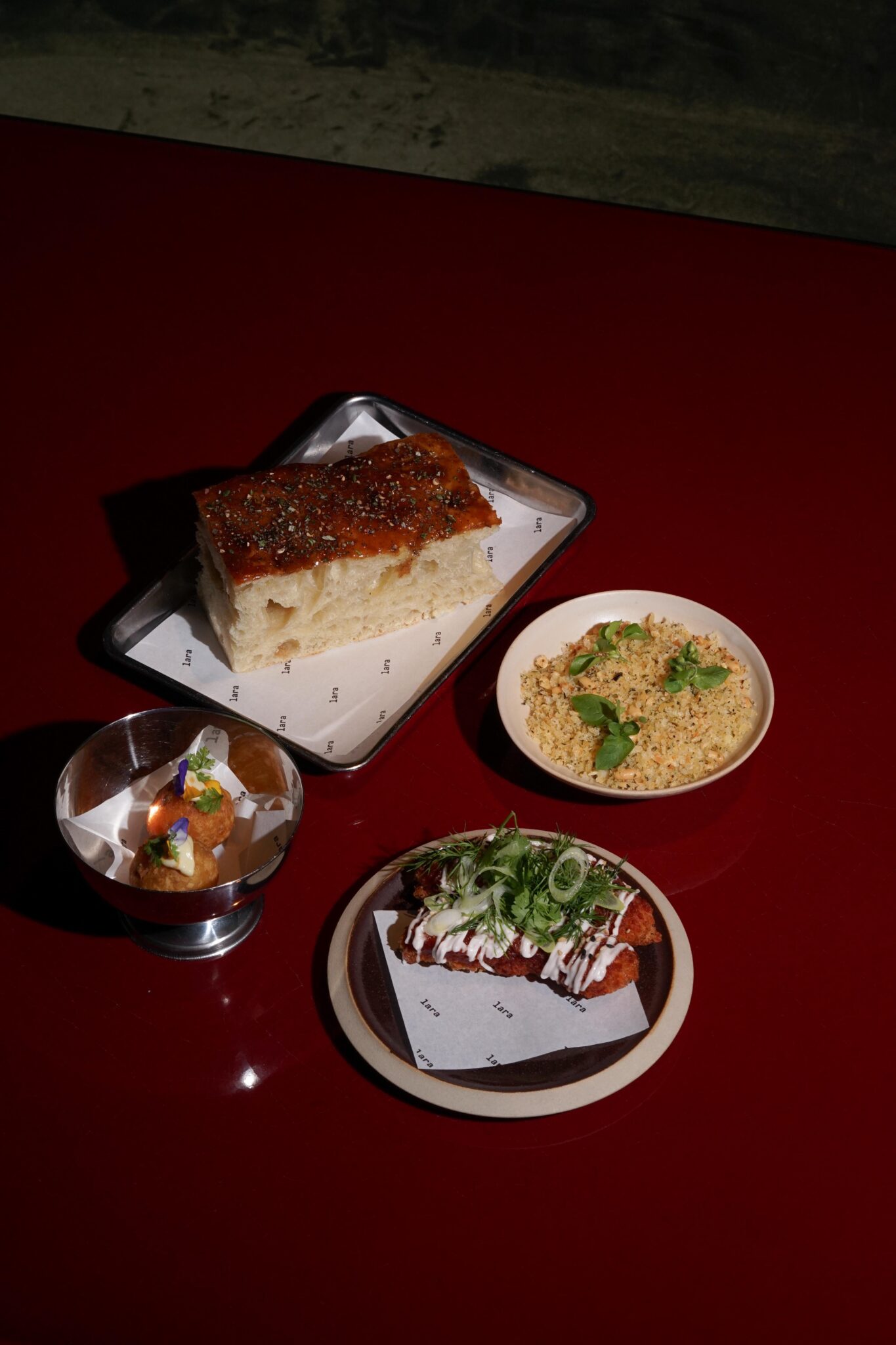 Das lara ist offen und zugänglich, ein Restaurant für alle Tageszeiten – Frühstück, Lunch und Dinner – und dennoch mit derselben Liebe zum Detail wie das JOLA. Hier ist alles spielerischer und spontaner. Das lara spiegelt die Leichtigkeit wider, die in der pflanzenbasierten Küche oft fehlt.