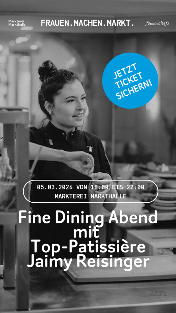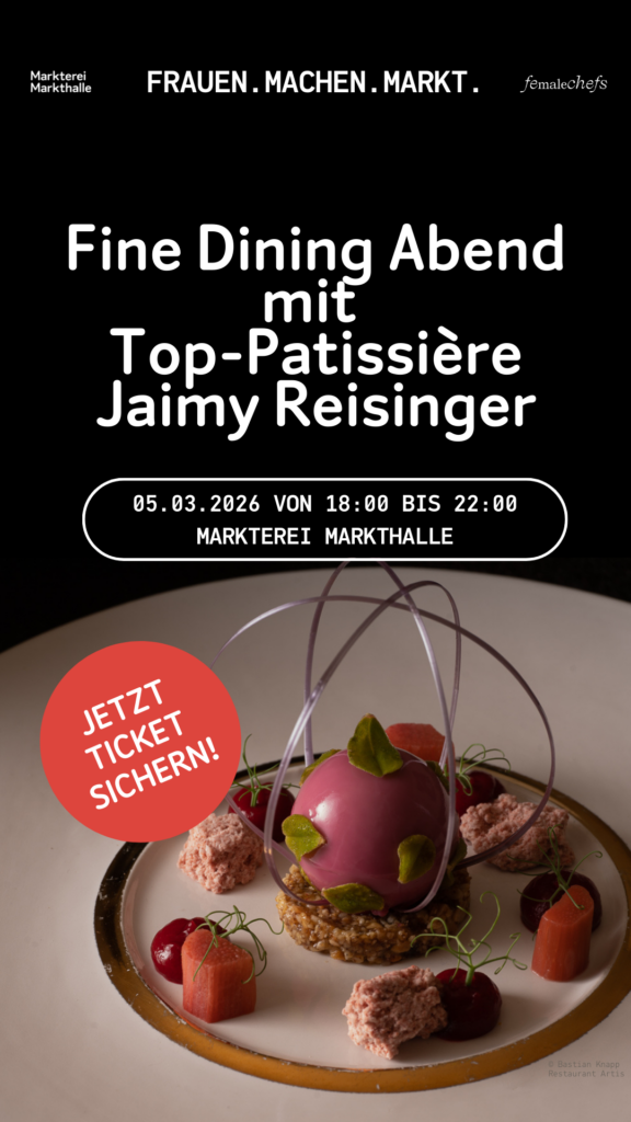 Im gesamten März widmet sich die Markterei gemeinsam mit Female Chefs dem Thema FRAUEN.MACHEN.MARKT. und setzt damit ein starkes Zeichen rund um den Weltfrauentag. Der Auftakt am 05. März verspricht einen Abend voller Inspiration für alle, die gutes Essen lieben. Für neugierige Genießerinnen und Genießer. Für Foodies, die neue Wege schmecken wollen.